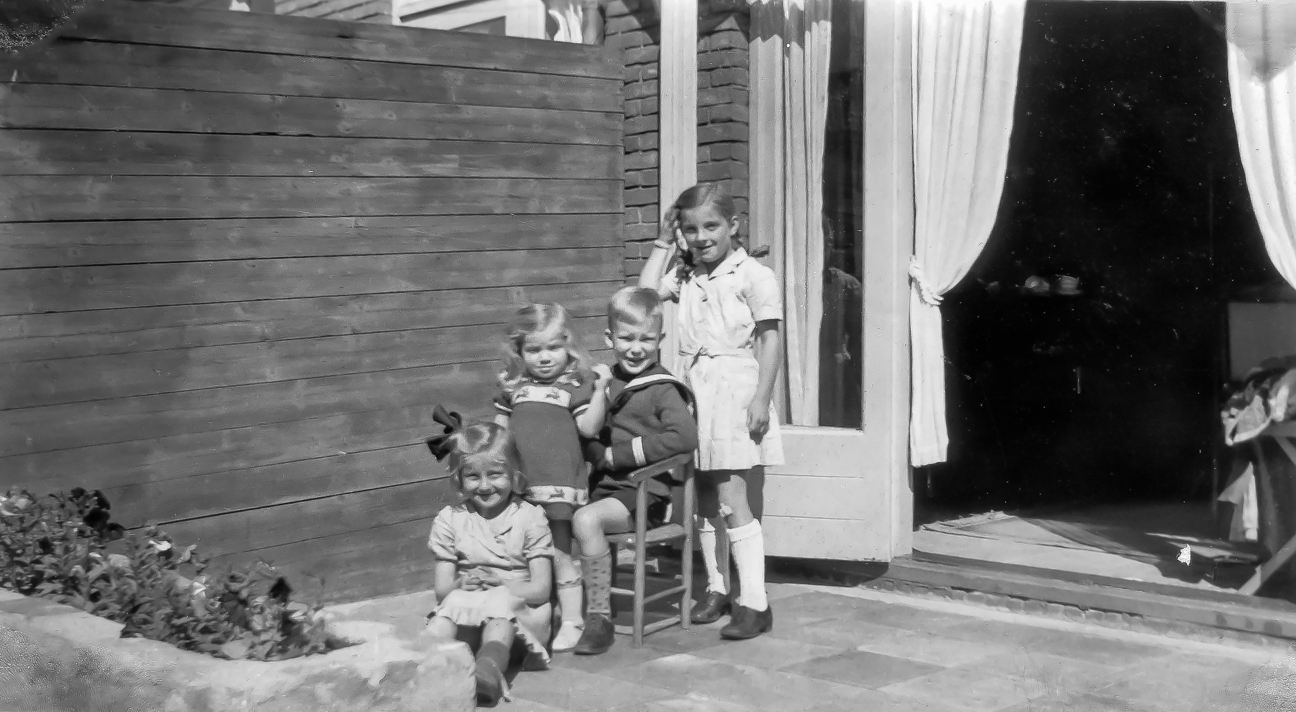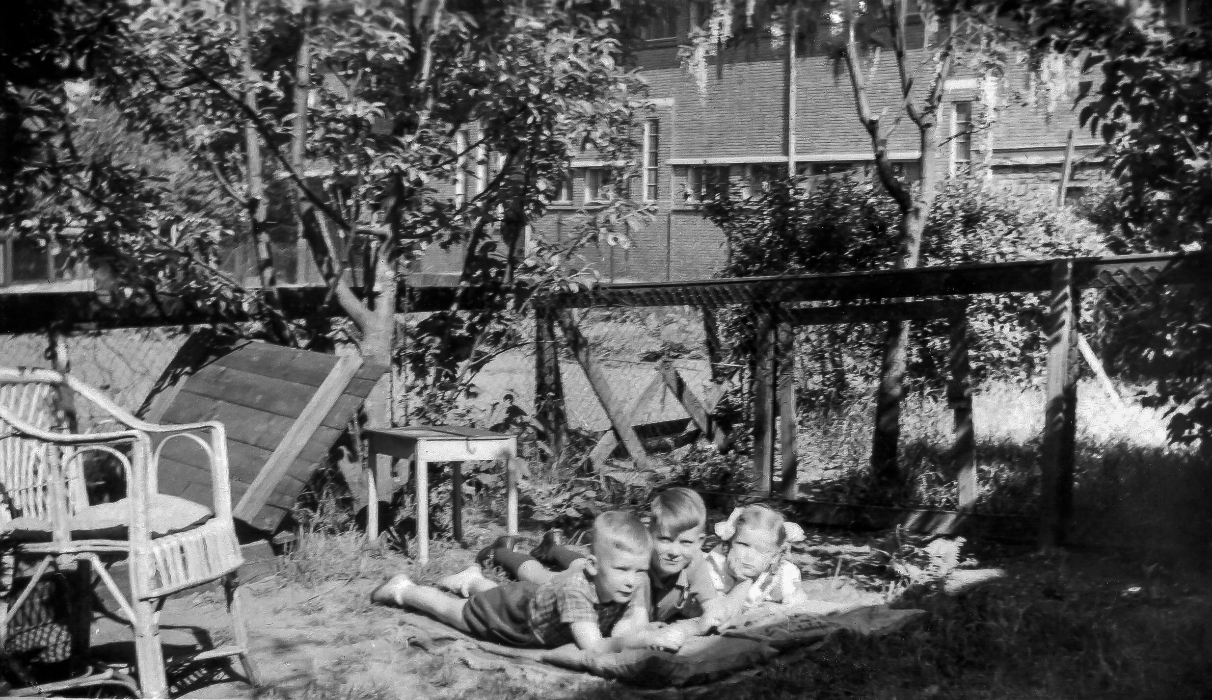 19480700: juli 1948. In de achtertuin met Peter en Phineke Craghs.