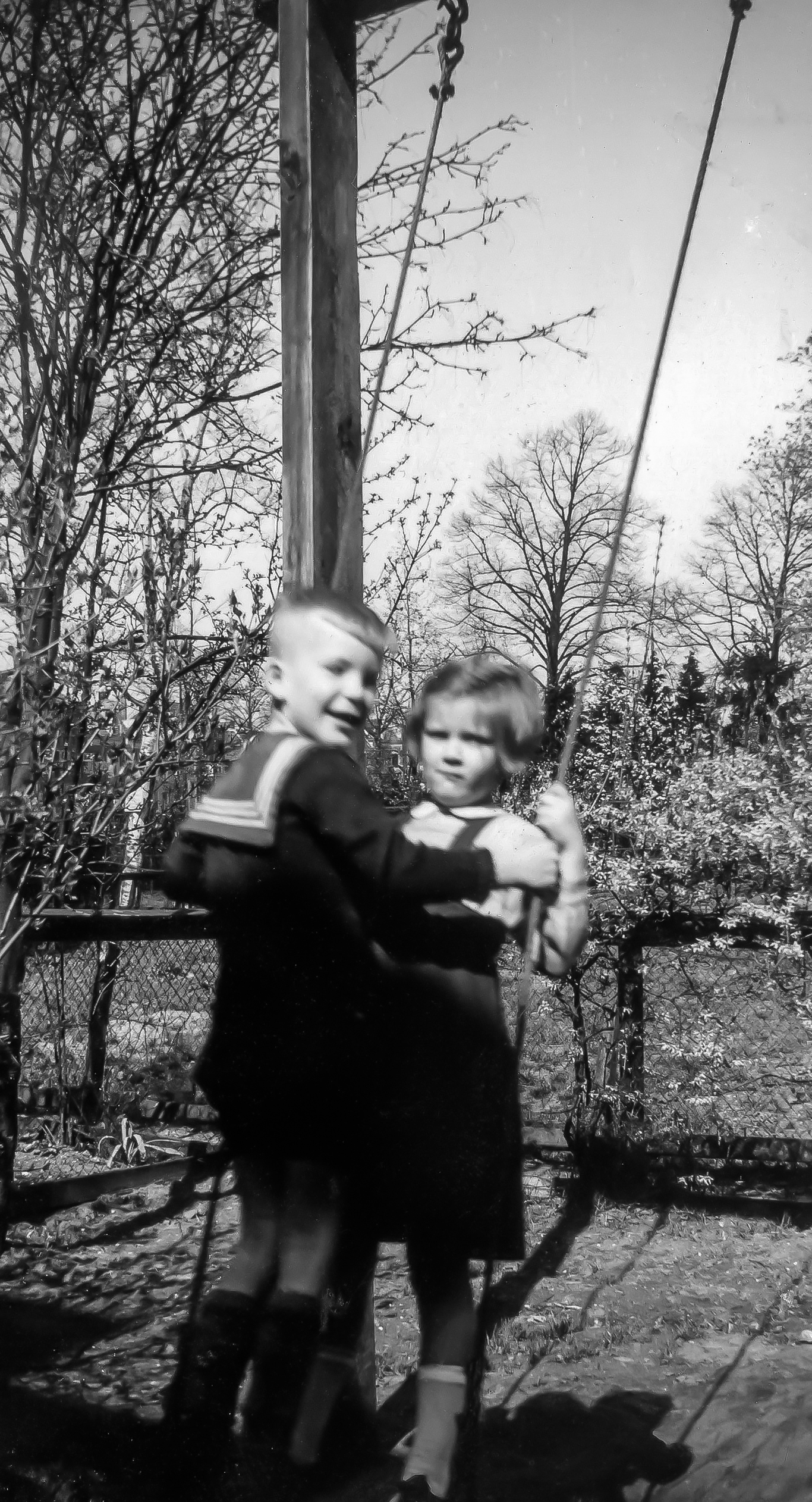 19480900: september 1948. Met Phineke op de schommel in de tuin bij Craghs.
