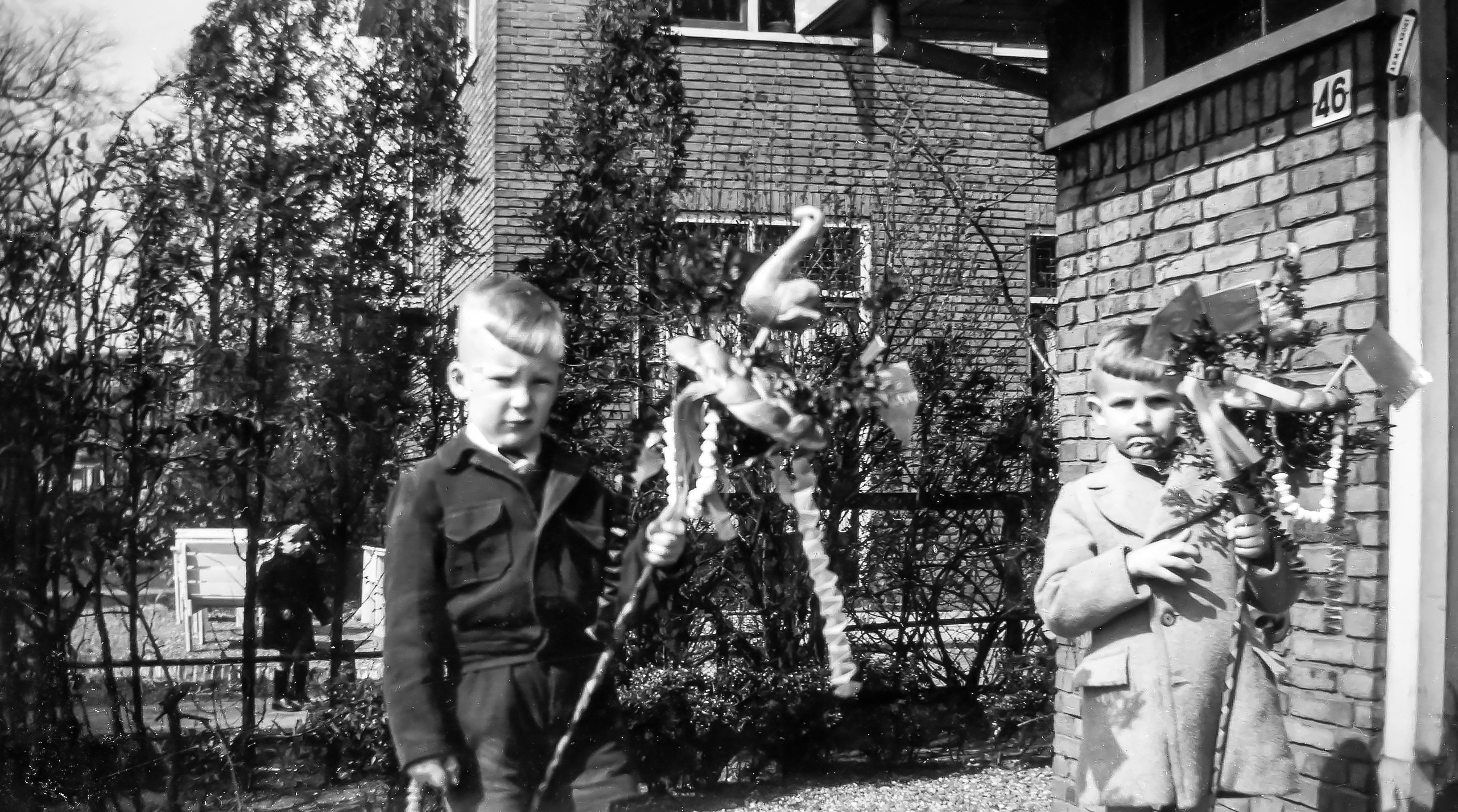 19490400 001, 002 en 003: april 1949, Palmpasen. Met Antoine, Marian en René Draper. En Bas.