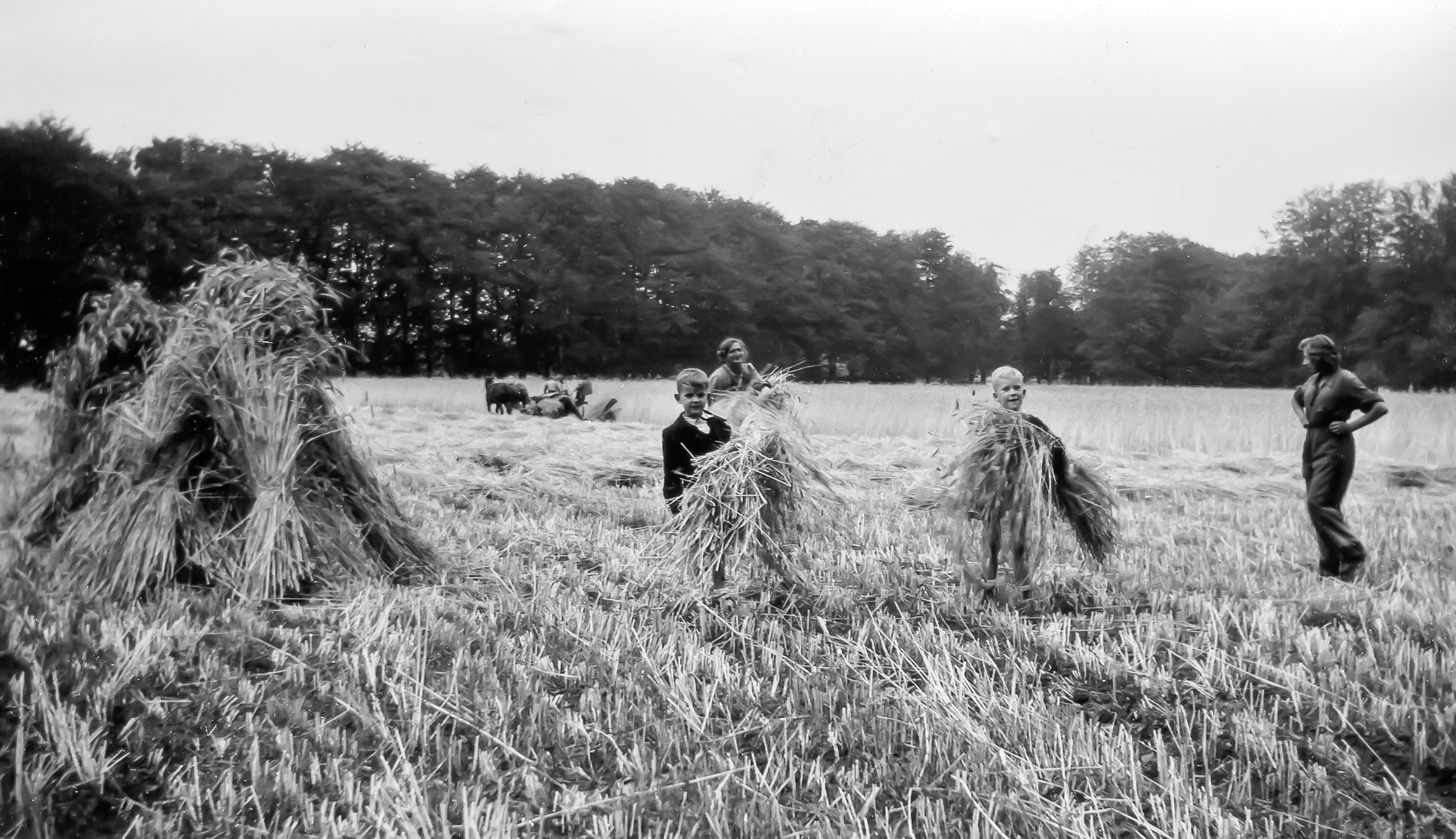 19490700 004: juli 1949. Helpen bij de oogst heeft mijn moeder bij deze foto geschreven.